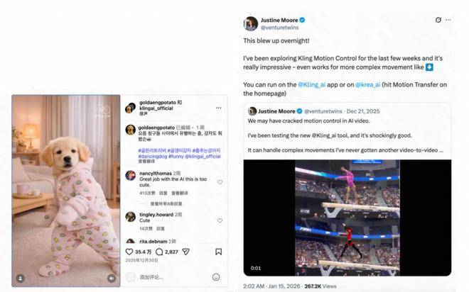 据《晚点 LatePost》报道,快手旗下视频生成大模子可灵 AI 正在本年 1 月的月活跃用户数(MAU)冲破 1200 万,成为其成立一年多以来增加最快的阶段。报道指出,可灵正在客岁 12 月持续推出多项环节能力,具备「音画同出」能力的可灵 2。6,以及动做节制功能 Motion Control。此中,Motion Control 成为本年 1 月增加的次要驱动力。用户只需上传当地视频或从动做库选择动做,再共同人物参考图,即可生成动做取脸色高度可控的视频内容。这一弄法正在韩国率先走红,并以「宠物跳舞」等形式正在全球社交激发普遍。报道称,可灵将专业创做者(P 端)取 B 端企业客户视为焦点用户群,P 端订阅收入贡献近 70%。但跟着 Motion Control 等功能的普及,其用户布局正向更普遍的 C 端扩展。今岁首年月,可灵正在巴西、俄罗斯、新加坡等近 40 个国度和地域的 iOS 画图取设想类下载榜登顶,并成为韩国、俄罗斯市场 iPhone 图形取设想类收入最高的使用。截至 1 月 20 日,可灵 App 端付费用户规模环比增加 350%。客岁 12 月,可灵单月收入跨越 2000 万美元;本年 1 月尚未竣事,但日均收入已较上月提拔约 30%。快手高级副总裁、可灵 AI 事业部担任人盖坤正在客岁 12 月的内部会上暗示,用 AI 规模化地发生好内容的临界点即将到来,这不只意味着东西层市场的迸发,也将成为 AI 内容平台机遇的起点。多家投行也对可灵的增加潜力给出积极判断。里昂证券认为市场尚未充实计入可灵的增加空间;摩根大公例称,受可灵表示鞭策,快手是全球最被低估的 AI 标的之一。