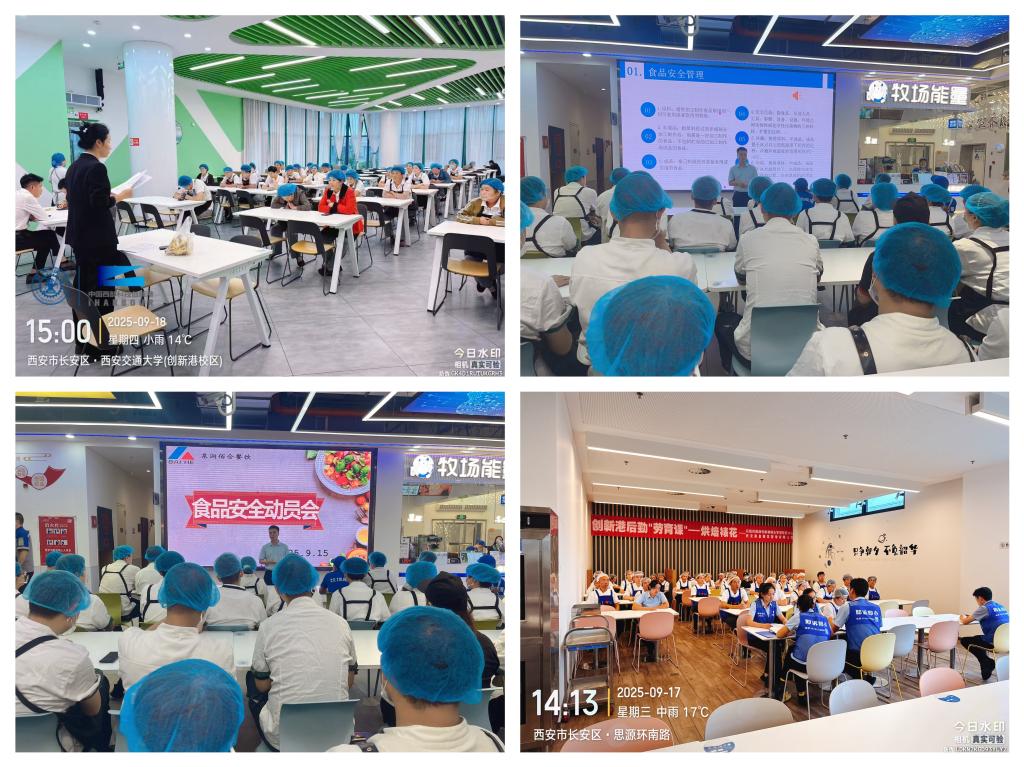 食物平安学问再进修。核心组织各食堂向从业人员开展食物平安学问宣传培训勾当,环绕餐饮办事卫生操做规范、六到位”办理模式等内容,通过旁不雅食物平安宣传片、食物平安学问培训等形式,全面提拔从业人员的专业学问及技术程度。